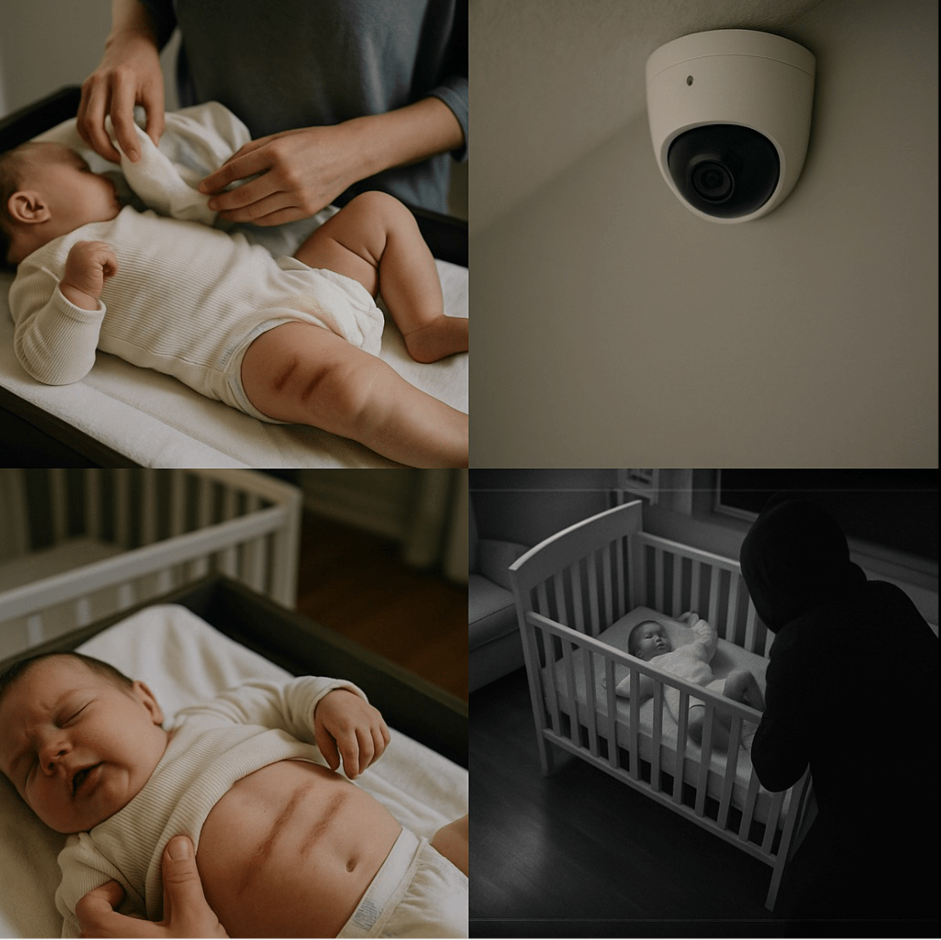 A cada troca de fralda, surgiam novas marcas inexplicáveis. No início, ela pensou que fosse apenas uma irritação — até que os hematomas se aprofundaram. Então ela instalou câmeras escondidas… e o que viu a fez chamar a polícia imediatamente.