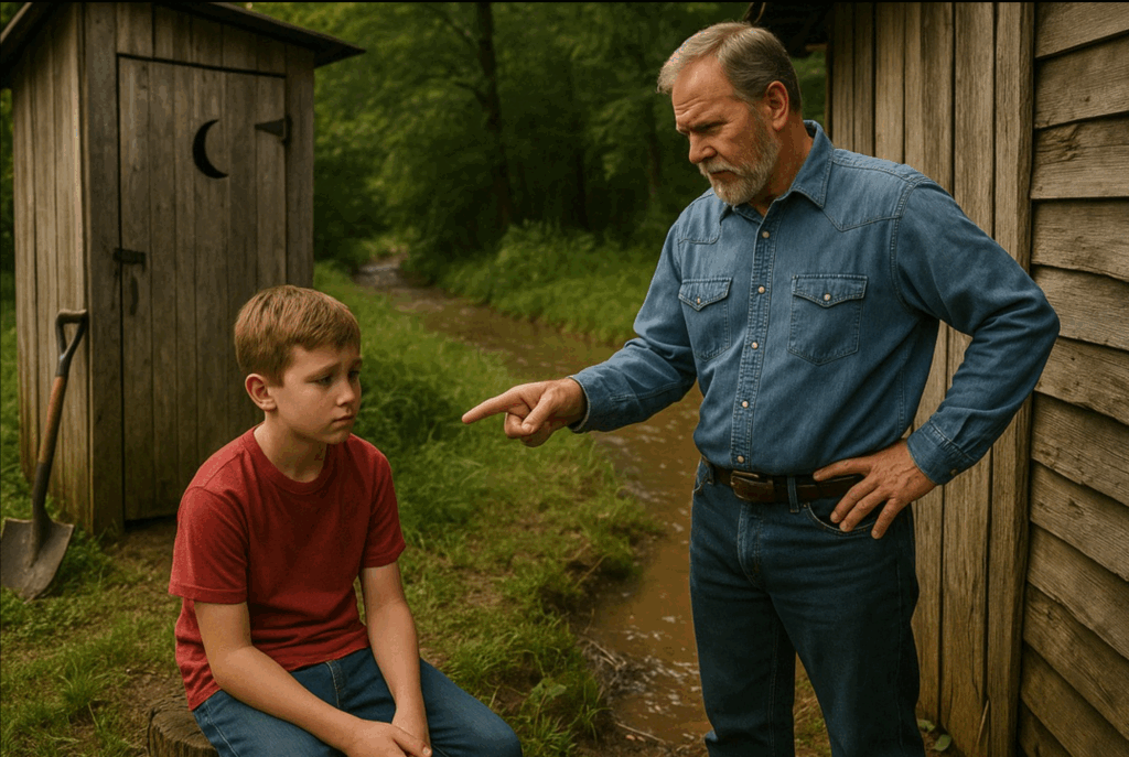 marcado pela severidade que tantas vezes mantivera o menino na linha, e os olhos dele tinham uma intensidade afiada e implacável. “Filho”, disse ele, com voz baixa e firme, “depois do jantar, vamos para o galpão de lenha.”