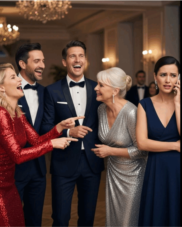 Nos cantos do salão, risadas contidas e cruéis ecoavam. Alguns convidados pegaram seus celulares para filmar discretamente, enquanto Tom ons Keyer, o filho mais jovem, iniciou uma transmissão ao vivo, comentando com um sorriso cínico:– “Isso vai ser interessante.”
