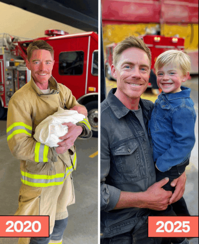 Cinco anos atrás, numa noite gravada na minha memória como fumaça presa para sempre no aço, encontrei um recém-nascido abandonado na porta do meu quartel de bombeiros — minúsculo, gelado, lutando para chorar.
