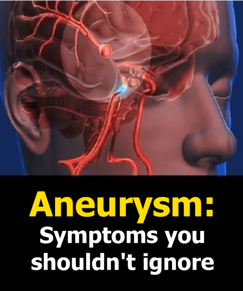 Alguns aneurismas — especialmente no cérebro — podem pressionar nervos próximos, causando: Dor atrás ou acima de um olho Visão turva ou dupla Pálpebra caída Pupila dilatada