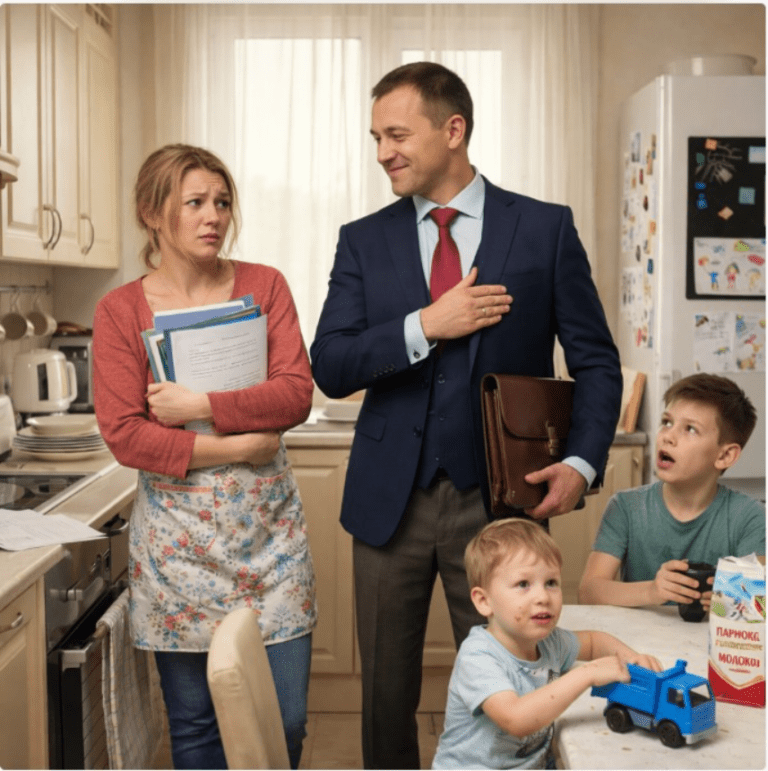 — Bom dia, — lançou ao passar, sem sequer olhar para as crianças, indo direto à geladeira pegar uma garrafa de água mineral.Daria sentiu um aperto frio e desconfortável por dentro. O café que acabara de tomar pareceu amargo de repente.