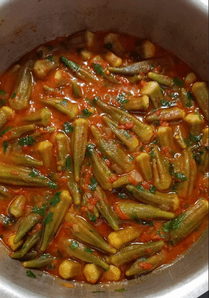 Leve ao forno pré-aquecido a 180°C por cerca de 1 hora, até que os quiabos e as batatas fiquem macios e o molho de tomate reduza.
