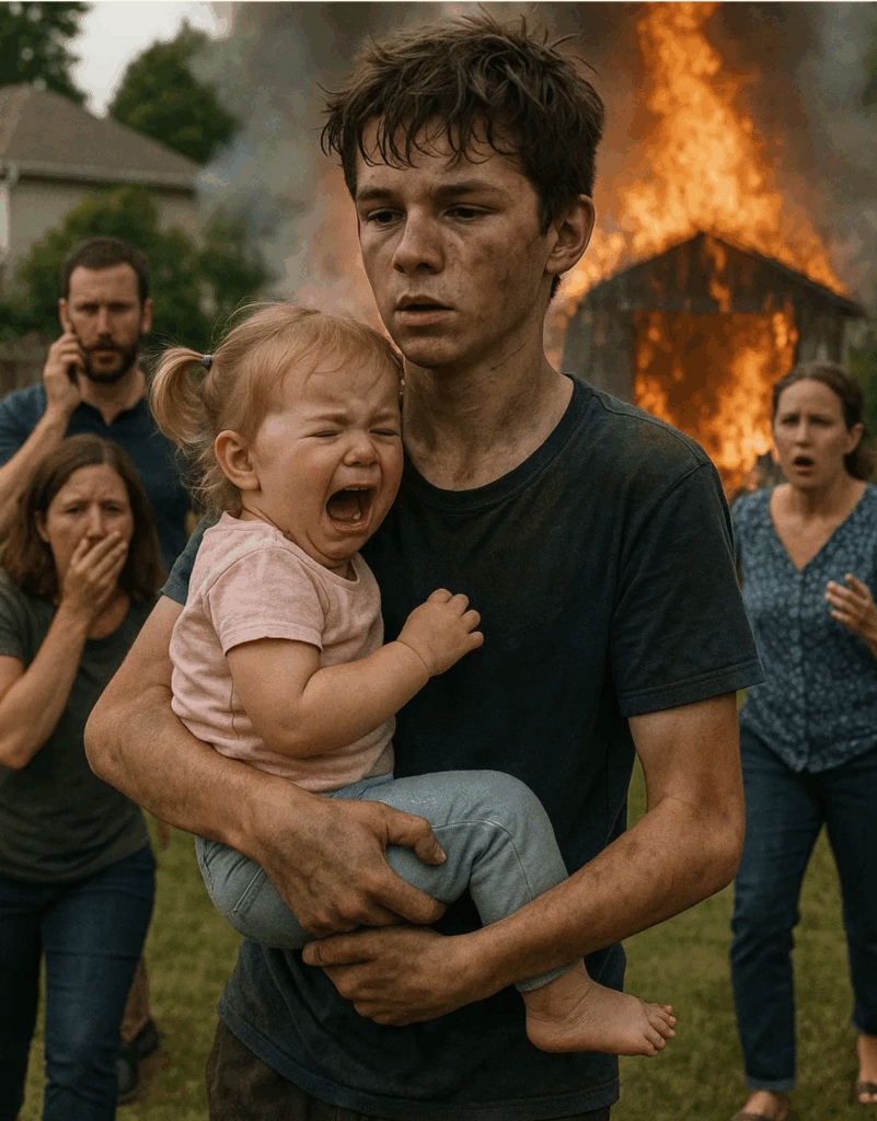Meu peito travou. Antes mesmo que eu pudesse reagir, Ethan—meu filho de doze anos—atirou o celular no gramado e correu em direção ao fogo.
