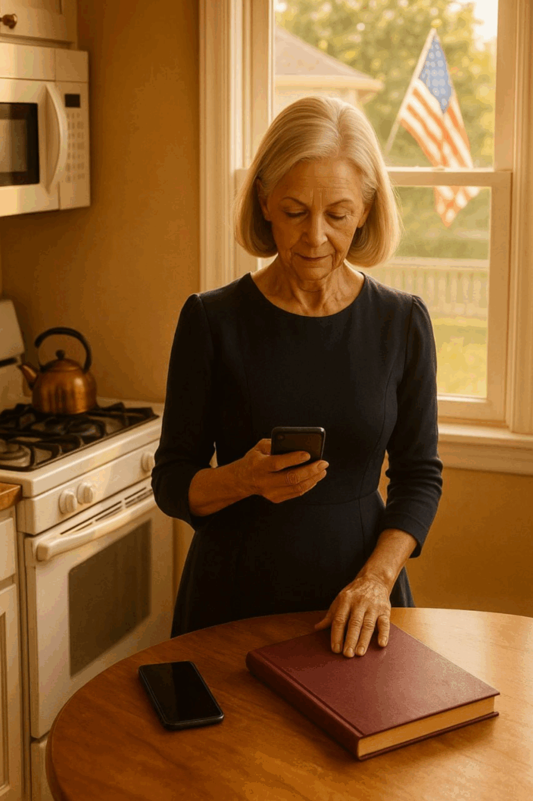 Alisei as pregas do meu vestido azul-escuro, aquele que sempre usava nos jantares de família — elegante, limpo, mas discreto. Aos setenta e sete anos, já não corria atrás da moda, mas minha aparência sempre importou.