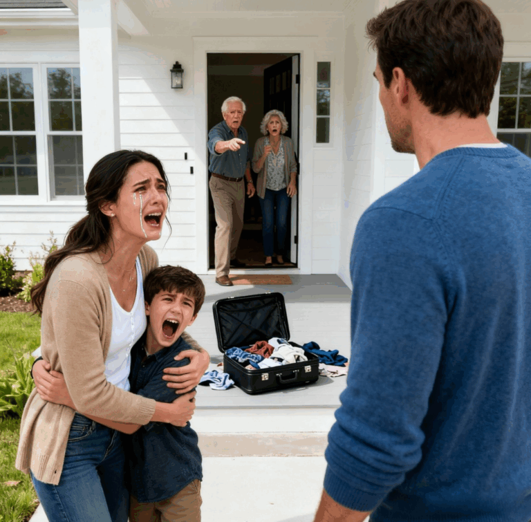 Um ano atrás, meu marido e a família dele me expulsaram de casa no meio de uma tempestade, com meu filho pequeno nos braços, chamando-nos de “parasitas pobres”, dizendo que jamais sobreviveríamos sem eles. Um ano depois… eram eles que estavam de joelhos, implorando por um lugar para ficar.