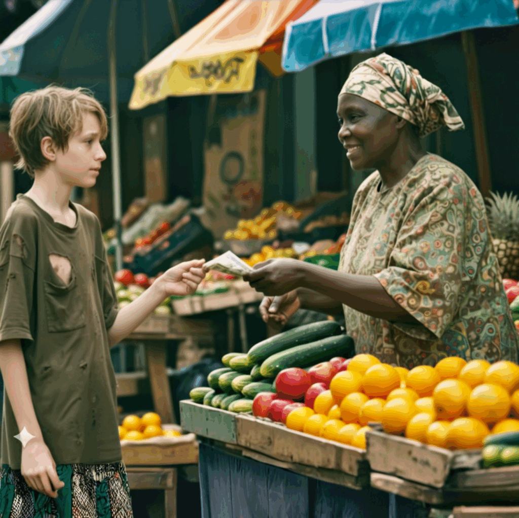 — Bondade não custa muito — disse ela um dia.— Mas compensa — respondeu ele, olhos brilhando.E de fato, compensou. Uma mulher negra, uma mesa dobrável, uma sacola de frutas. Ela não tinha muito — mas deu o que tinha. E isso mudou tudo.