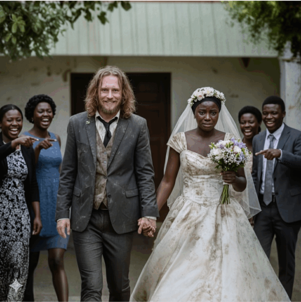 A cerimônia começou, mas o ar parecia pesado. Cada sussurro era uma lâmina silenciosa. Mesmo assim, Angela não vacilou. Segurou a mão de Malick, e juntos enfrentaram aquele mar de julgamento.