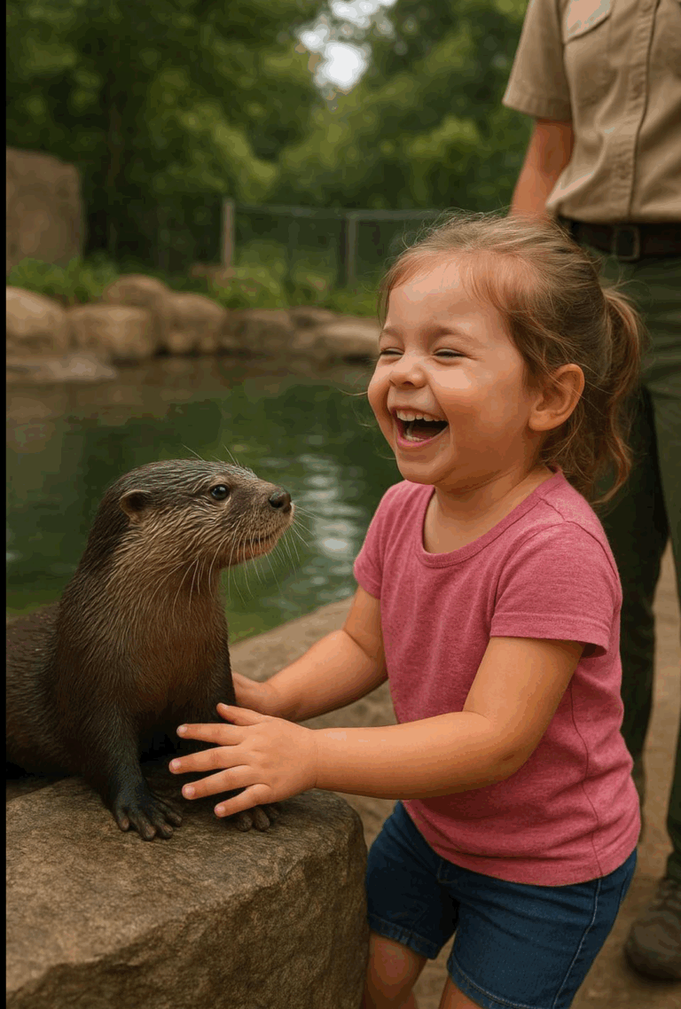 Mas, ao chegarem ao cercado das lontras, algo mudou. A menina ficou paralisada, boquiaberta, os olhos fixos na água cristalina onde Luna, a lontra, nadava com uma elegância quase humana.“— Mamãe… olha… ela está vindo até mim!” murmurou, maravilhada.