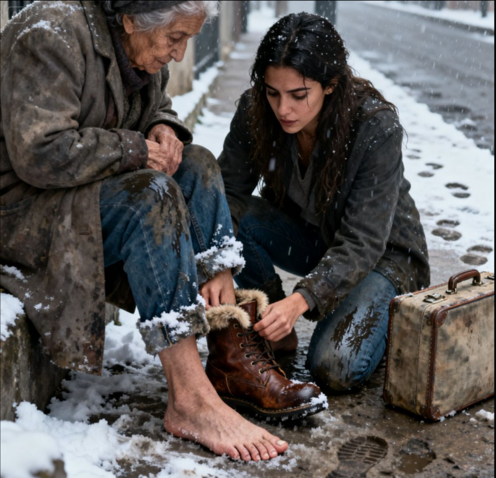 Olhei para minhas botas. De inverno. Quentes. Resistentes. Depois para a mala — roupas, mas nenhum par extra de sapatos. Não pensei. A razão gritava que eu morreria de frio. Mas a humanidade gritava mais alto.Aproximei‑me. Ajoelhei‑me na neve.
