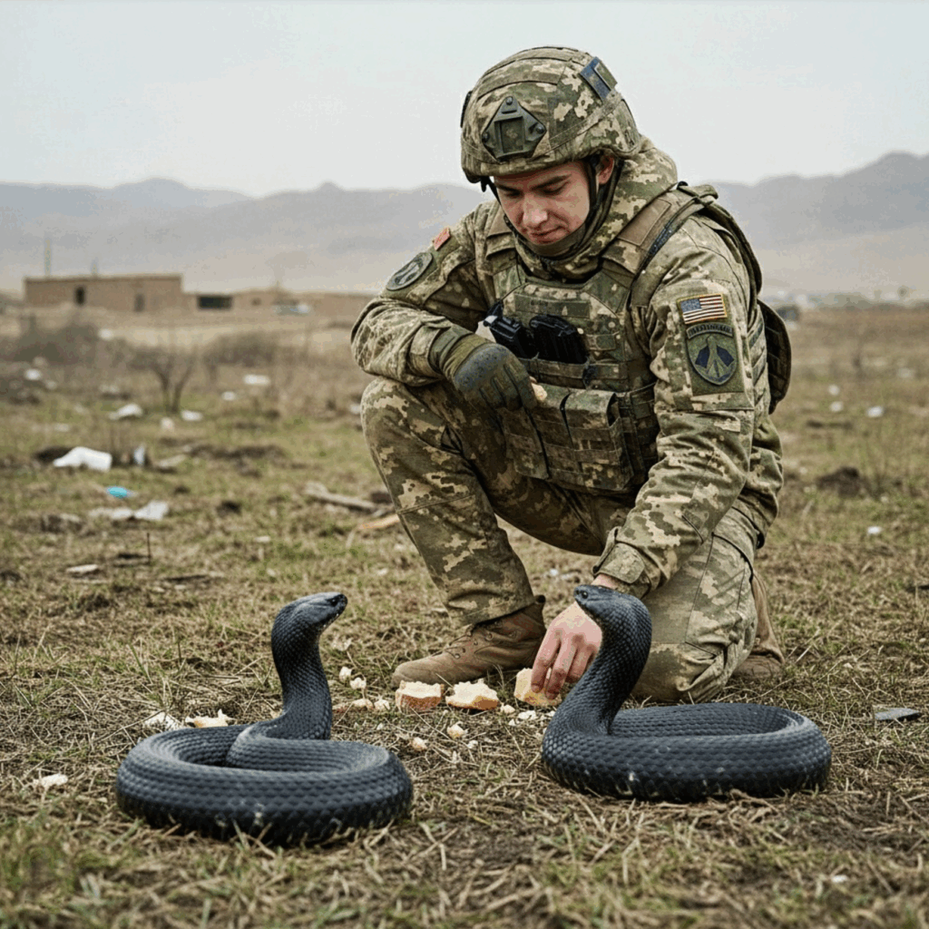 Seus camaradas ficavam perplexos. Soldados normalmente eliminariam qualquer ameaça potencial perto do acampamento. E ali estava Ethan, alimentando cobras venenosas por diversão. No entanto, em zonas de combate,