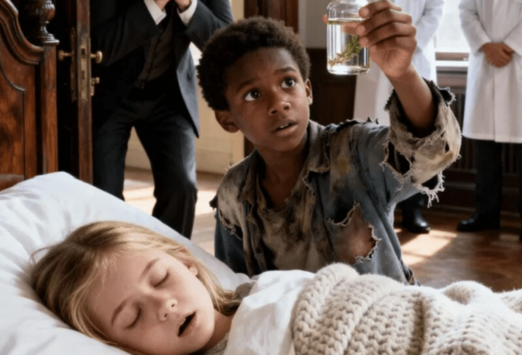 Os seguranças o notaram.“Ei! Garoto, suma daqui!”Ele deveria ter fugido. Os ricos não gostam de lembretes de pobreza. Mas seus dedos se fecharam no frasco.“Preciso ajudar alguém”, disse, firme apesar do corpo trêmulo. “Ela está morrendo.”