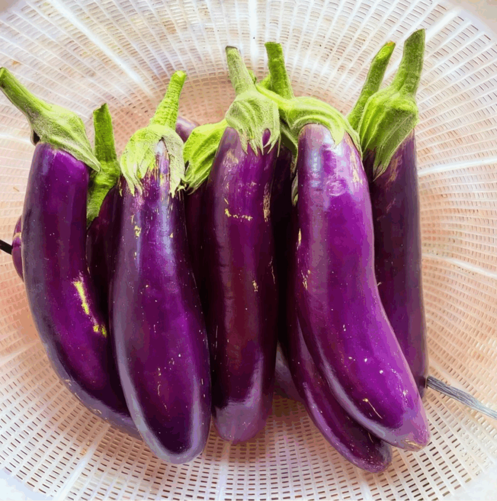 especialmente a nasunina, o composto que dá à casca sua cor roxa intensa. Esses antioxidantes combatem os radicais livres, ajudando a reduzir inflamações, retardar sinais de envelhecimento e apoiar a saúde a longo prazo. Em resumo: a berinjela não é apenas boa para você — também é amiga da beleza.
