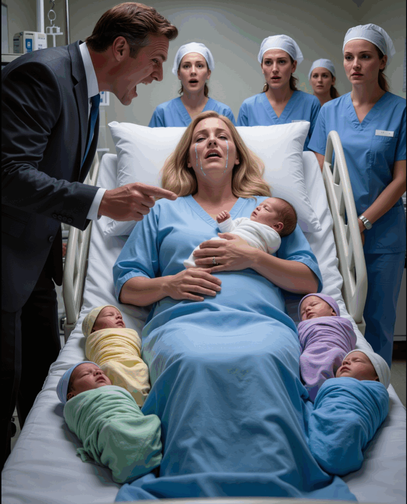 Anna estava tremendo, o suor escorrendo pela pele, segurando cinco recém-nascidos enrolados em mantas pastel. Trigêmeos já seriam um espanto—mas cinco? Um verdadeiro milagre. E, mesmo assim, ninguém na sala os olhava com admiração.