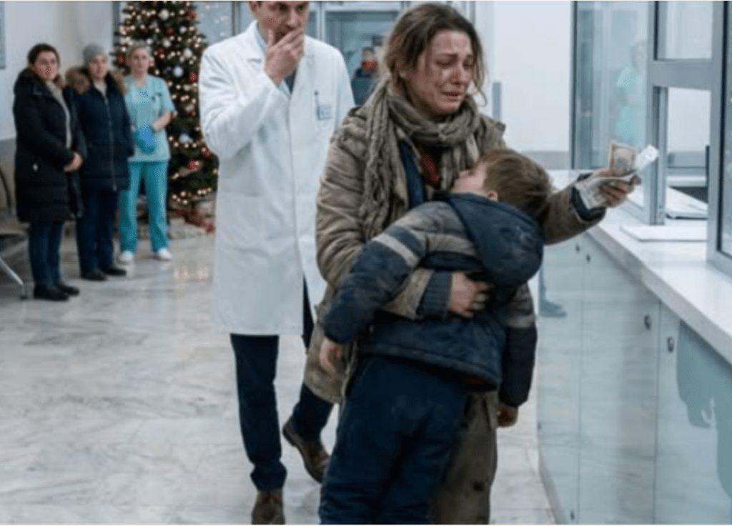 Até que, na noite de 23 de dezembro, sua febre chegou a quarenta graus. O corpo dele se curvou. Marina sentiu algo se rasgar dentro de si. Envolveu-o num cobertor e saiu na chuva — sem dinheiro, sem escolhas. Quando ajoelhou-se no piso de mármore do hospital e chorou como se suas lágrimas fossem a última moeda que tinha para dar,