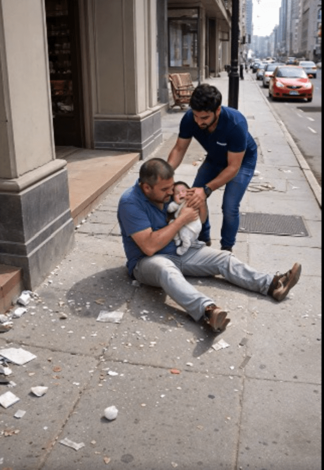 Foi então que vi algo que me gelou a alma — a criança caindo. Pequena, indefesa, girando pelo ar entre os fragmentos de vidro.Não houve tempo para pensar. O instinto me fez agir. Levantei as mãos, corri à frente e, no último segundo, segurei o bebê. Caímos juntos no asfalto.
