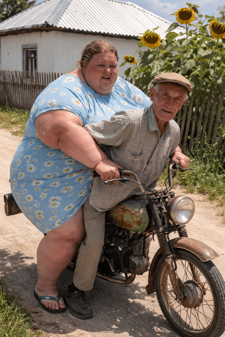 Foi quem estava sentado atrás dele.Uma mulher na casa dos trinta anos, vestida com um vestido azul com margaridas, segurando-se calmamente e com confiança a Stepán, como se fosse a coisa mais natural do mundo. A moto avançava com dificuldade, às vezes tossindo,