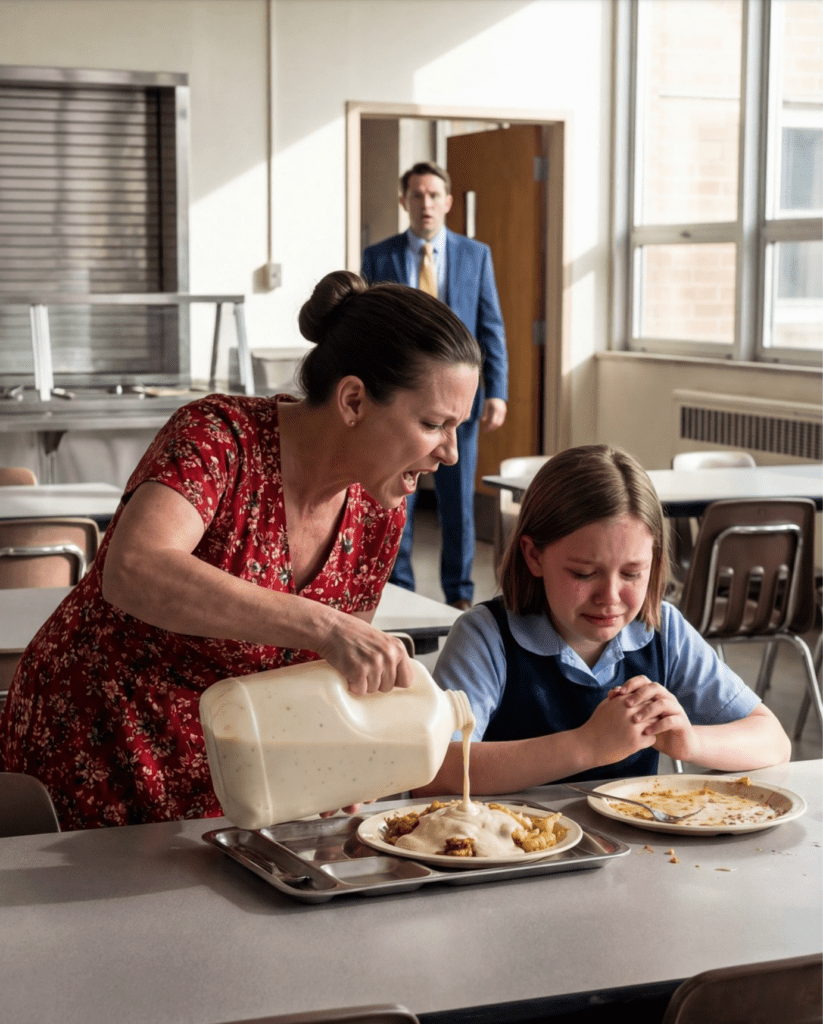 Emma era forçada a sentar em uma mesa perto da estação de descarte de lixo. Vanessa confiscava seu lanche e o substituía por sobras.— Você não aprecia o que recebe — sussurrou Vanessa uma vez, com um sorriso cortante como uma faca. — Isso vai te ensinar respeito.