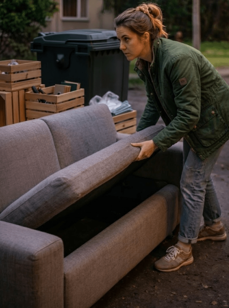 Naquele momento, uma pequena caminhonete freou bruscamente. Dois homens desceram, descarregaram uma poltrona desgastada com o braço rasgado e desapareceram antes que Emma pudesse perguntar qualquer coisa. Ela sentiu um arrepio estranho subir por suas costas.